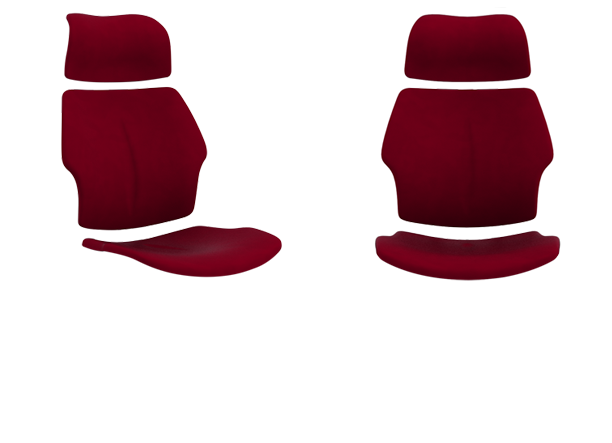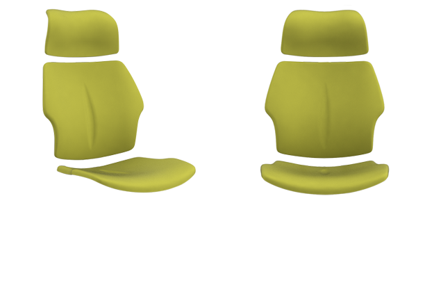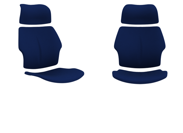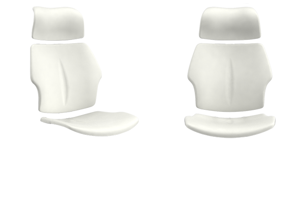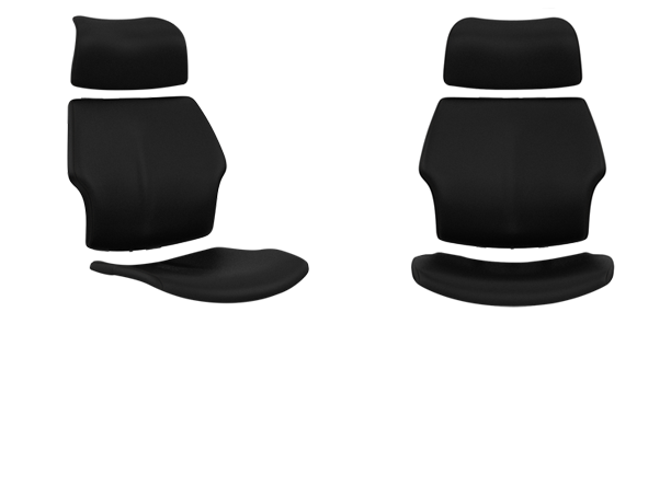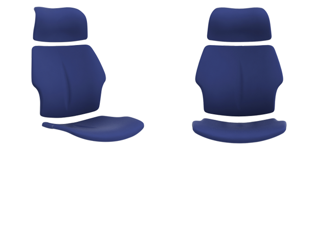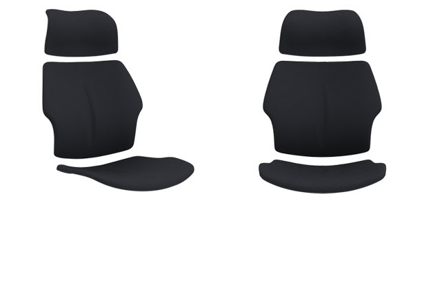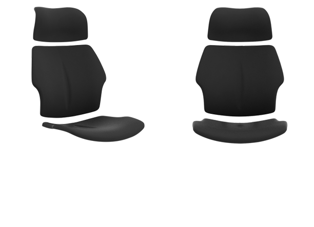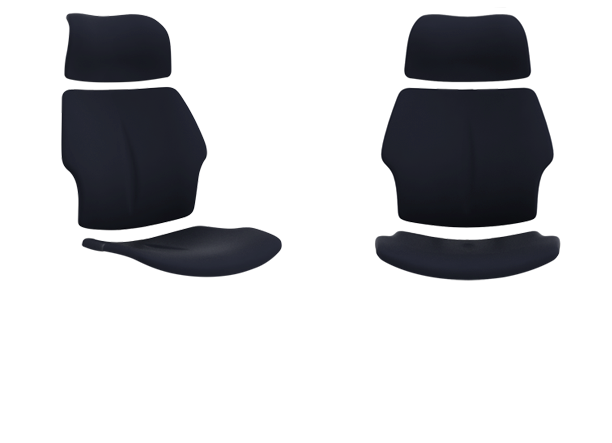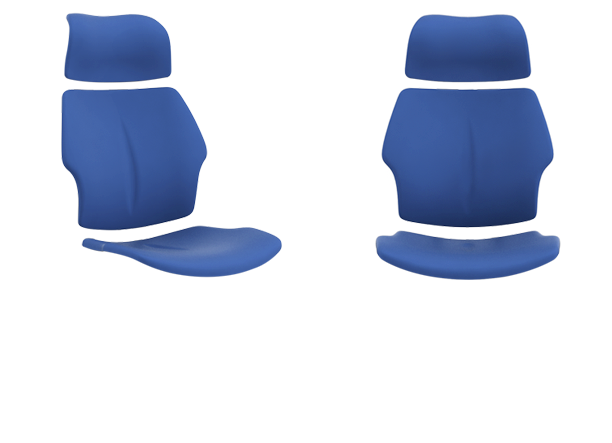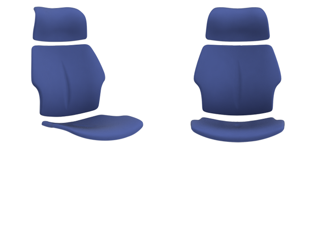 - Contoured cushions increase contact area on thighs to reduce pressure points