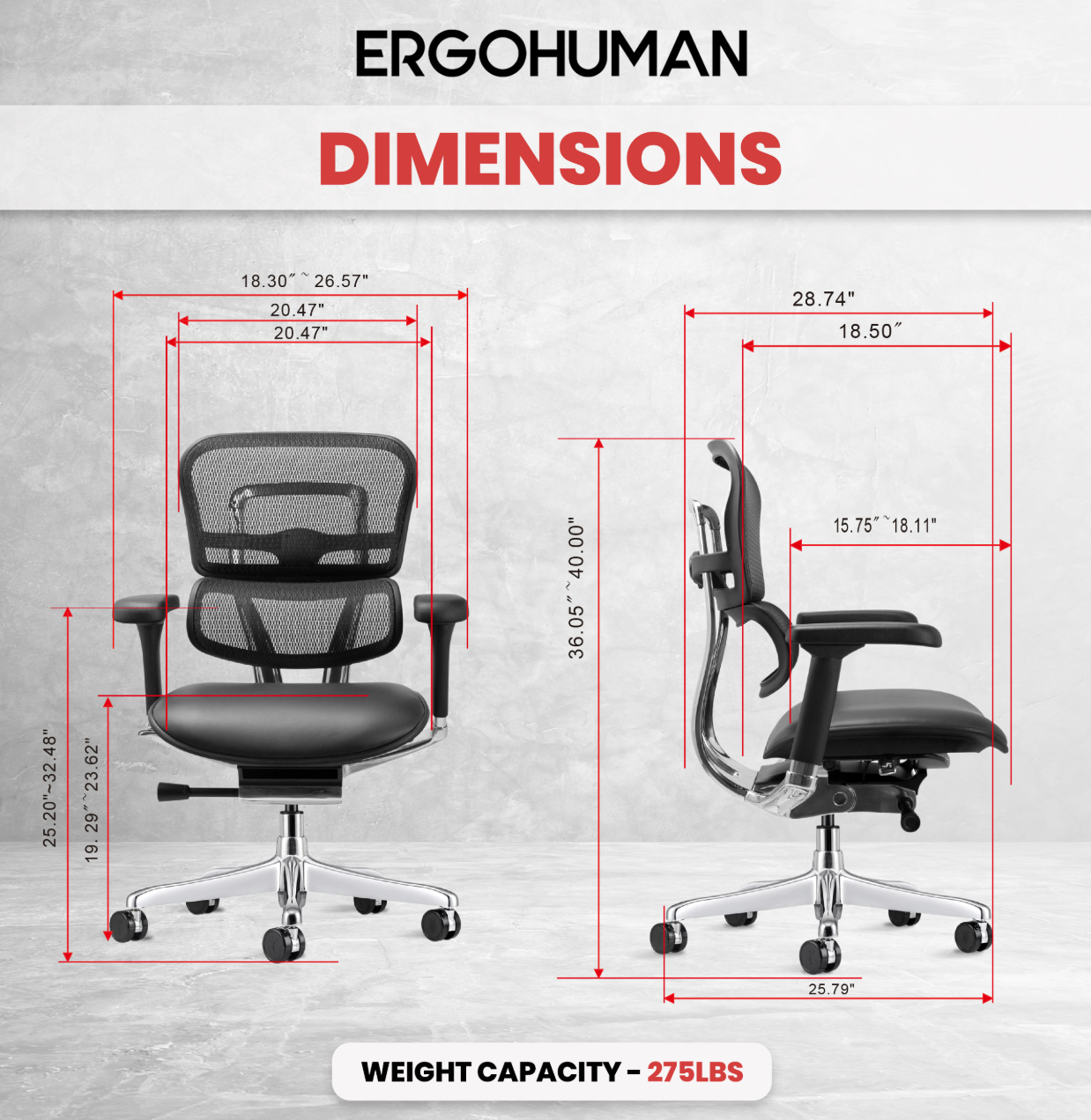 Style and comfort - get ready for the best of both worlds in a desk chair. Mesh back and leather upholstery on the cushion are just two reasons why the Raynor Ergohuman Chair - Mesh Chair with Leather Seat model LEM6ERGLO is so well-loved in offices everywhere.