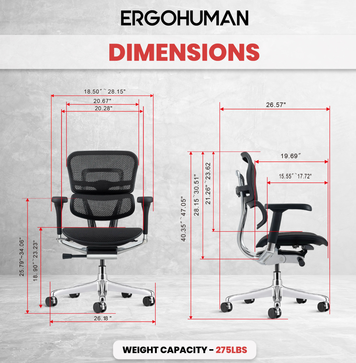 26.2" W x 26.6" D x 40.4" - 47.1" H |
