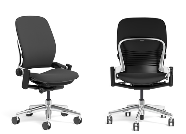 The Steelcase Leap Chair is available in your choice of a black or platinum or polished aluminum frame: